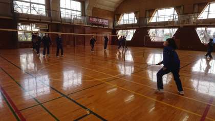 3年体育は、男子「サッカー」、女子「バドミントン」をやっています。