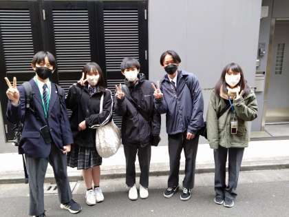 マスクをして班行動です!!都内巡りをして、いろいろなものを見学したり、体験しています。