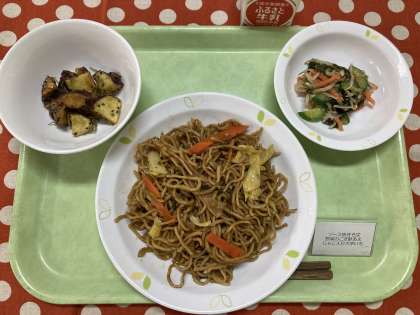 今日は人気メニューの「ソース焼きそば」と「じゃこ入り大学いも」です。