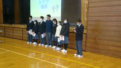1学年は2月3日(金)に実施する鎌倉校外学習の事前指導として、本日5校時、学年集会を行いました。