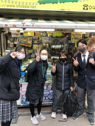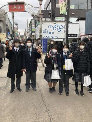 美味しいもの食べて、班員とお土産を探しています。幸せなひとときです。(東)