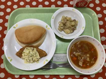 タルタルソースも手作りしています。単なる調味料ではなく、具材の卵や野菜の栄養もしっかり考えた上での献立で、調理員さんも主菜やスープと同じように心を込めて丁寧に作ってくださっています。なので、残さず食べてもらえるととても嬉しいです!