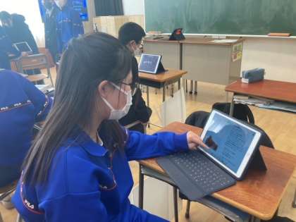 2年生4時間目の総合では、1月27日に行われた東京下町校外学習の事後学習をしました。班ごとにスライドを作っています。体験学習で作った蒔絵や木目込細工の作品、お昼に食べた美味しそうなお好み焼きやラーメンの写真を見ていると、楽しい思い出が蘇ってきます。下町の伝統文化を学んだ貴重な経験を振り返りながら、それぞれが文章を作ったり、タイトルのフォントにこだわったり、絵を描きながら表現していました。
