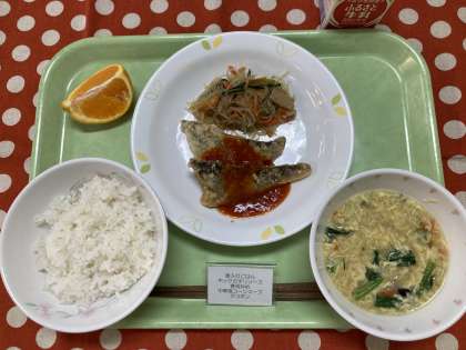 この料理は、中華料理の「エビのチリソース煮」略して「エビチリ」をアレンジしたものです。中華料理ではありますが、豆板醤のピリ辛とトマトケチャップの甘酸っぱいチリソース味の「エビチリ」は、意外にも日本で生まれたそうです。なるほど日本人好みの味で、みんなたくさん食べていましたね!