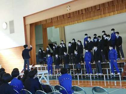 今日の4限は合唱コンクールに向けて、学年リハーサルが行なわれました。当日の動きの確認、そして課題曲の時の旅人を実際に歌ってみました。