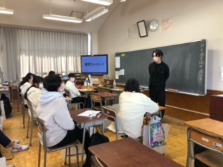 職業講話です。 質問コーナーになりました。積極的に質問をしています。 榎本