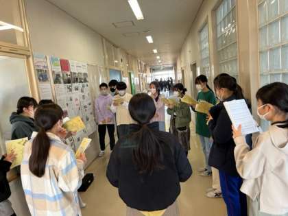 1時間目は教室でのパート練習、2時間目は武道場とミーティングルームで合唱練習を行いました。