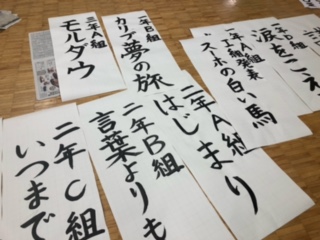今週末に控えた合唱コンクール。学発実行委員の担当者がめくりプロを作成しました。レイアウトを考え、字の大きさを工夫して…と、一枚一枚に気持ちがこもっています。