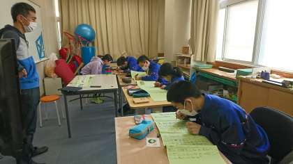 I組の教室に行ってみると、3年生は修学旅行の振り返り、1年生は自立の授業を行なっていました。