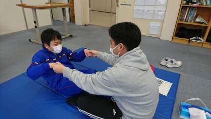 入学時はほとんどできなかった腹筋。今日はなんと、50回もできていました。