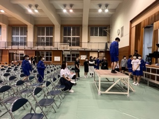 バスケ部が明日のリハーサル準備をしてくれています!ありがとうございます!! 豊岡