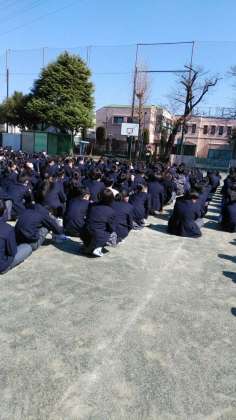 写真は避難訓練の後の卒業式練習に向けての動きの確認をしているところです。