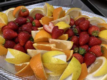 いちご、オレンジ、日向夏の3種類のフルーツを、調理師さんが、いつもとは違う飾り切りで華やかに盛り付けてくださいました!