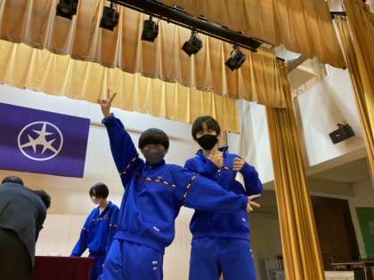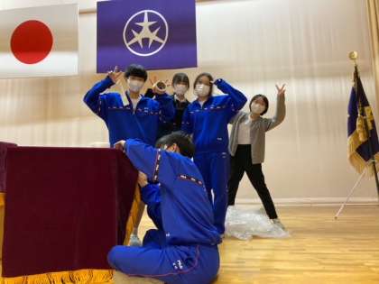 2年生学級委員や生徒会の執行部も頑張って三年生の卒業式のために働きました。舞台上の配置を整えたり、3年間の体育祭で毎年作ったクラス旗を体育館に設置していきました。沢山の大切な思い出を味わいながら式を迎えてください。