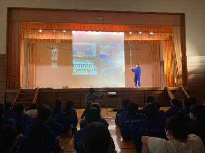 本日を含めて今年度も残り3日となりました。4時間目の2年生は、学年レクを行いました。1人で沢山の楽器を演奏し、編集も行う多重録音マルチフルートプレイヤー、即席バンド、フラメンコダンスやヒップホップダンスを楽しみ、最後は男子バスケ部員を中心に作成されたオリジナルムービー「〇〇の逆襲」を観て大爆笑しました。みなさんの普段隠された?才能を知り、とっても楽しい素敵な1時間でした。
