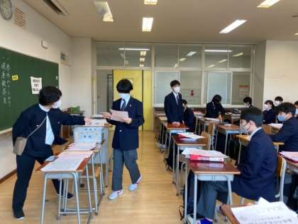 新2年生、荷物を持って旧教室から新教室にスムーズに移動していました。新しい仲間、新しい担任の先生と共に一年間頑張っていきましょう!