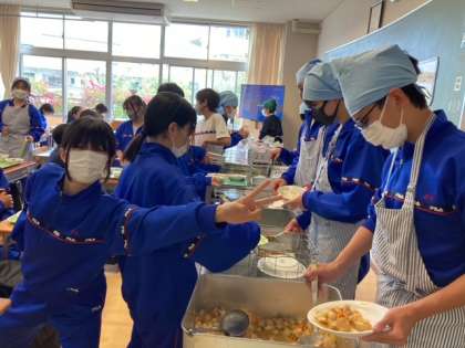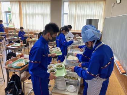 給食の配膳、2年生はどのクラスもとっても手際が良く、見ている方も気持ちが良くなるほどです。そして今日の煮物、味が染みていてとっても美味しかったです。「食べ応えがあって美味しかった!」「美味!」「山本先生のふりかけの富士山盛りがおいしそうだった!」などなど2Dの感想、そうそう煮物の時は出汁をとった鰹節や昆布の美味しいふりかけも楽しみですよね!