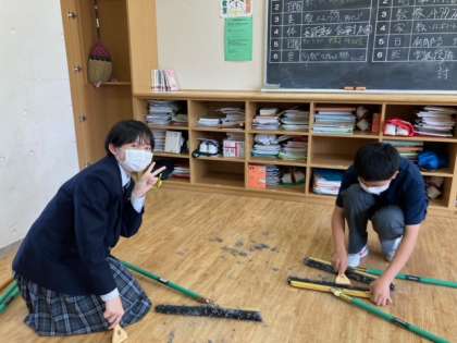 金曜日の放課後、整美委員は、教室の掃除道具のお掃除、クリーナ清掃、机の中のチェックなど、教室の美化のために頑張っていました。