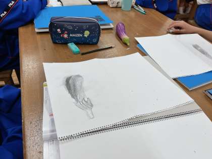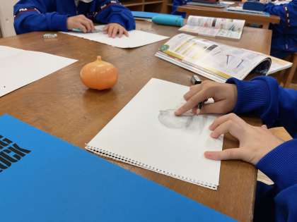 1年生の美術の授業では、デッサンに取り組んでいます。