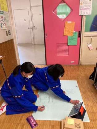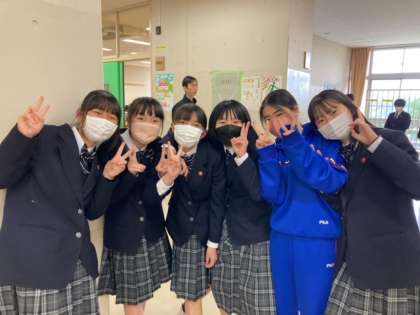 お昼休みの2年生、1枚目は、教室掲示のための大きな紙にクラス目標を美しくデザインしている生徒、2枚目は、かなり恥ずかしそうな女子バレー部メンバー、3枚目は、クラスをまたいだ「美少女グループです!」、仲間と一緒なら写真をとられることにも勇気が沸きますね。昨日今日と少し肌寒いですが、昼休みを上手に発散時間に使っているようです。