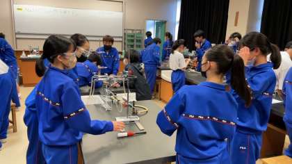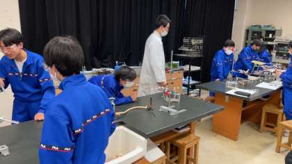 注意事項を聞いた後、自分たちで実験を進めていました。