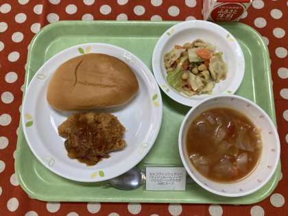 今日は、白身魚のフライを自分でパンにはさんで食べる「セルフフィッシュサンド」です。フライには玉ねぎの甘みをきかせたマッシュルームソースをかけました。