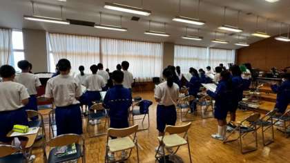 4時間目、1Aの音楽では、明日の離任式のために校歌を練習していました。まだ覚えたての校歌ですが、元気よく歌っています ^_^ 明日の離任式で、離任された先生に届きますように(松田)