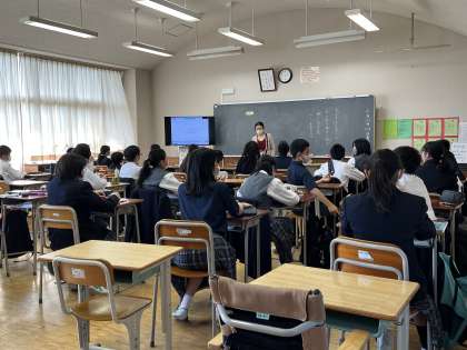 まだ入学して日が浅い一年生ですが、校歌の歌詞を確認しながら離任式のために練習するその姿が素敵です!