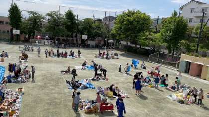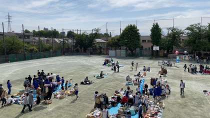 本日は東深沢・等々力コミュニティー主催のフリーマーケットを本校で行っています。