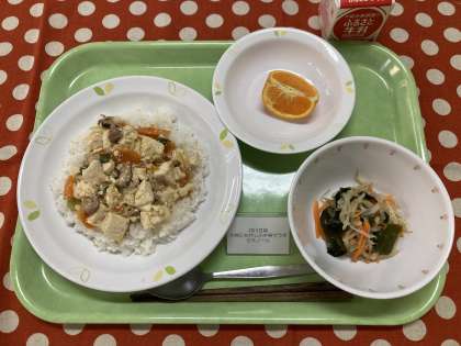 「四川豆腐」の「四川」とは、中国の四川地方のことで、四川料理といえば、山椒や唐辛子を使ったとても辛い料理が多いのが特徴ですが、給食では、辛みの元である豆板醤はちょっぴり使うもののやさしい味に仕上げています。ごはんがすすむ味なので、ごはんにのせて丼にしました。