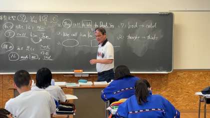 3年生の英語は英作文の授業でした。 文型を確認しながら、日本語を英語に直していました。