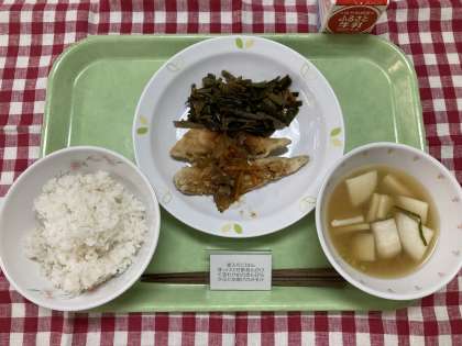くきわかめには、体の調子をととのえたり、免疫機能をアップさせる効果があるといわれています。みなさんの体に良い働きをしますよ。少しずつでも食べてほしいです。