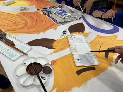 美術部で体育祭のオブジェ制作中です!