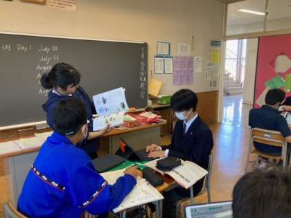 2年生の英語では、シンガポールに旅行に行くお話を読みました。今日は、自分たちでもシンガポールに夏休みに行くならどこに行くかを話し合い、発表しました。英語で予定を話す時は、be going toなどを使います。しっかりと使いこなせていました。