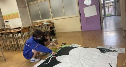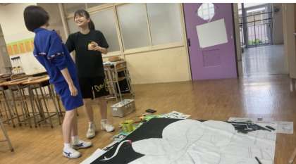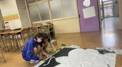 これは、昨日の応援旗作成の様子です。