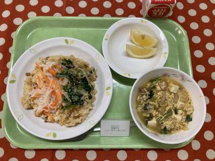 給食では、キムチは少なめ、辛さも控えめですが、辛いのをハフハフ言いながら食べるチゲは、暑くても寒くてもまた格別ですよね!豆腐や肉、たっぷりの野菜でバランスもよきです。