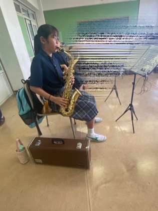 吹奏楽部は朝から初心者講習会に参加をしております。