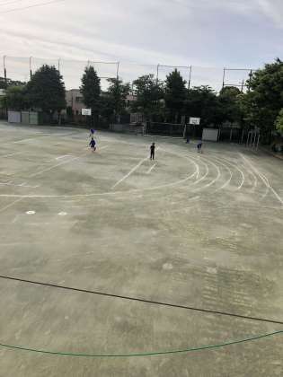 朝7時前から朝練ができる様に、3年生の体育委員が、校庭のライン引をしてくれています!