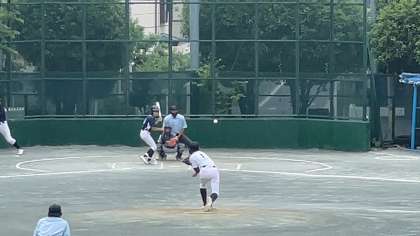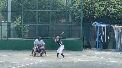 野球部の夏の大会が行われています。 一回表2点を先制しました。