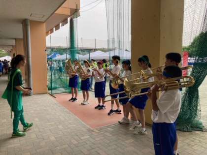 体育祭での吹奏楽部のパフォーマンス、お楽しみいただけたでしょうか。OBも観に来てくれて、片付けまで手伝ってくれました。次は8月のコンクールに向けて頑張ります。
