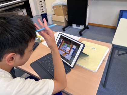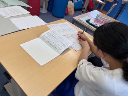 1人は文章を読んだ後に映像でイメージを膨らませ、もう1人は漢字にチャレンジしています!