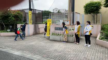 PTAの方々や地域の方々が挨拶と見守りをしてくださいました。