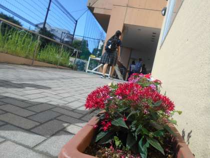 生活委員も日陰に立ち、挨拶に集中できる対策をしています。