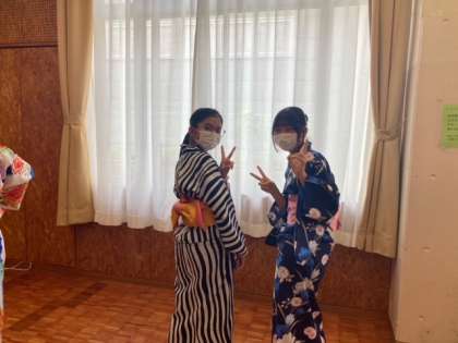 今日は2年生が楽しみにしていた着付け教室、浴衣の着方を自由が丘の着物専門店「まるやま」のスタッフの皆さんに教えていただきました。帯締めが完成し、写真を撮っていると「脱ぎたくないなぁ、もっと着ていたい」と笑顔でみんな話していました。これから地域の夏祭りや花火大会などあります。ぜひまた自分で浴衣が着れるようになると楽しいですね。