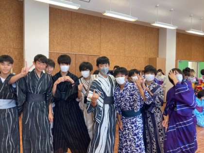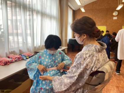 4時間目の2-Bの着付け教室の様子です。「着るのは難しかったけど、着てみると思っていた以上に動きやすい」と男子生徒が話していました。後世に伝えていきたい日本の美しい伝統、わたしたちみんなで繋いでいきましょう。