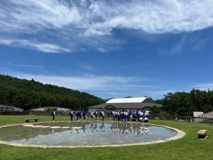 一日目の富士山レーダードーム前の広場です。 良い天気に恵まれて、水がまるで鏡のよう! 倉橋