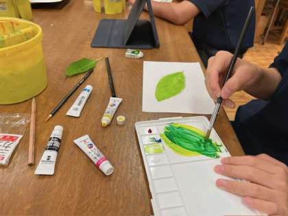 一年生の美術の授業で、三原色を使って実際の葉を見ながら描きました。