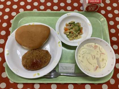 今日は、揚げたての大きなコロッケを自分でパンにはさんで食べる「セルフコロッケサンド」です。