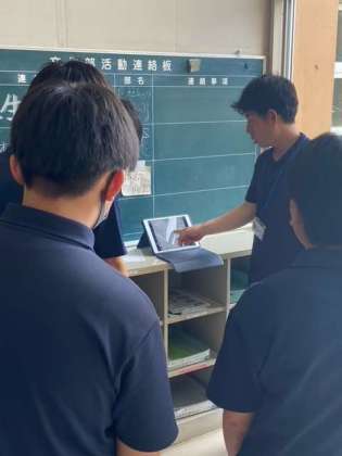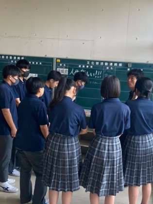 本日の朝職員室前に学級委員が集まり、何かを話していました。