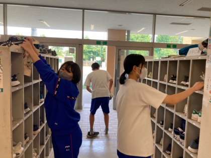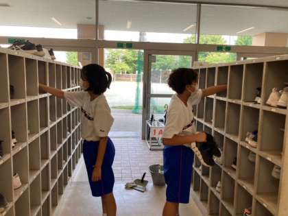 1学期も残りわずかとなりました。大掃除最終日の本日放課後は、整美委員たちがクラスの下駄箱を丁寧にお掃除しました。暑い中、かなり砂埃が出て大変でしたが、その甲斐あってとても綺麗になりました。1学期をみんなが気持ちよく終えられるように頑張っていました。